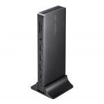 HDMIx2ポートの映像出力端子を備え、4Kx2画面の映像出力に対応したドッキングステーション。専用ACアダプタ付き。