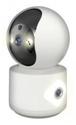 ・商品詳細 : ●首振カメラと固定カメラ、2つのカメラを搭載。アプリで同時に2つの映像を確認できるスマートカメラ。●外出先からスマートフォンで室内をリアルタイムで確認できます。●首振り対応。※首振カメラ側のみスマートフォン操作でカメラを自由に動かせるので見たいところに調節可能。(左右320°上下70°)●自動追跡機能。※首振カメラ側のみ動くものを自動で追いかけます●動体検知で記録写真撮影とスマートフォンへの通知が可能。映像や画像はスマートフォンへの記録、microSDカード録画、クラウド(有償)録画に対応。●200万画素の高画質とデータ通信量を抑えるための低画質を切替可能。●microSDカード対応 過去の記録も確認できます※microSDカードは付属していません。※microSDカードに記録した動画や画像は製品本体装着時に限りアプリ内でのみ確認できます。●マイク・スピーカー内蔵。●明るく照らす高輝度LED搭載。●夜間時は周囲の明るさに合わせて自動切替。スマート/赤外線/フルカラーの3パターンから選択可能。●最大16台同時に閲覧可能なマルチ画面対応。●映像を家庭内で共有。複数人で同時に映像を確認できます。●アプリ内で他のスマートカメラやスマートリモコンなどと連動できます。●壁面や天井にも設置できる取付部品を付属。※USB-A電源は付属していません。※本製品は屋内専用です。防水機能はありません※本製品は国内専用です。海外では使用できません。