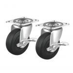 汎用キャスター用ゴム車輪、プレート式ストッパー付き自在車キャスター。